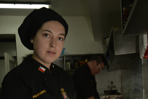 La Marinero 1º Lidia Sagredo, es ayudante en la cocina y la única mujer en esta área en el edificio de la Primera Zona Naval. Se siente orgullosa de su especialidad puesto que reconoce que la labor que realiza junto con sus compañeros es de suma importancia. "Sin la especialidad no habría comida, no habría quien los sirva, y uno aprende mucho día a día, donde el compañerismo es un pilar fundamental".